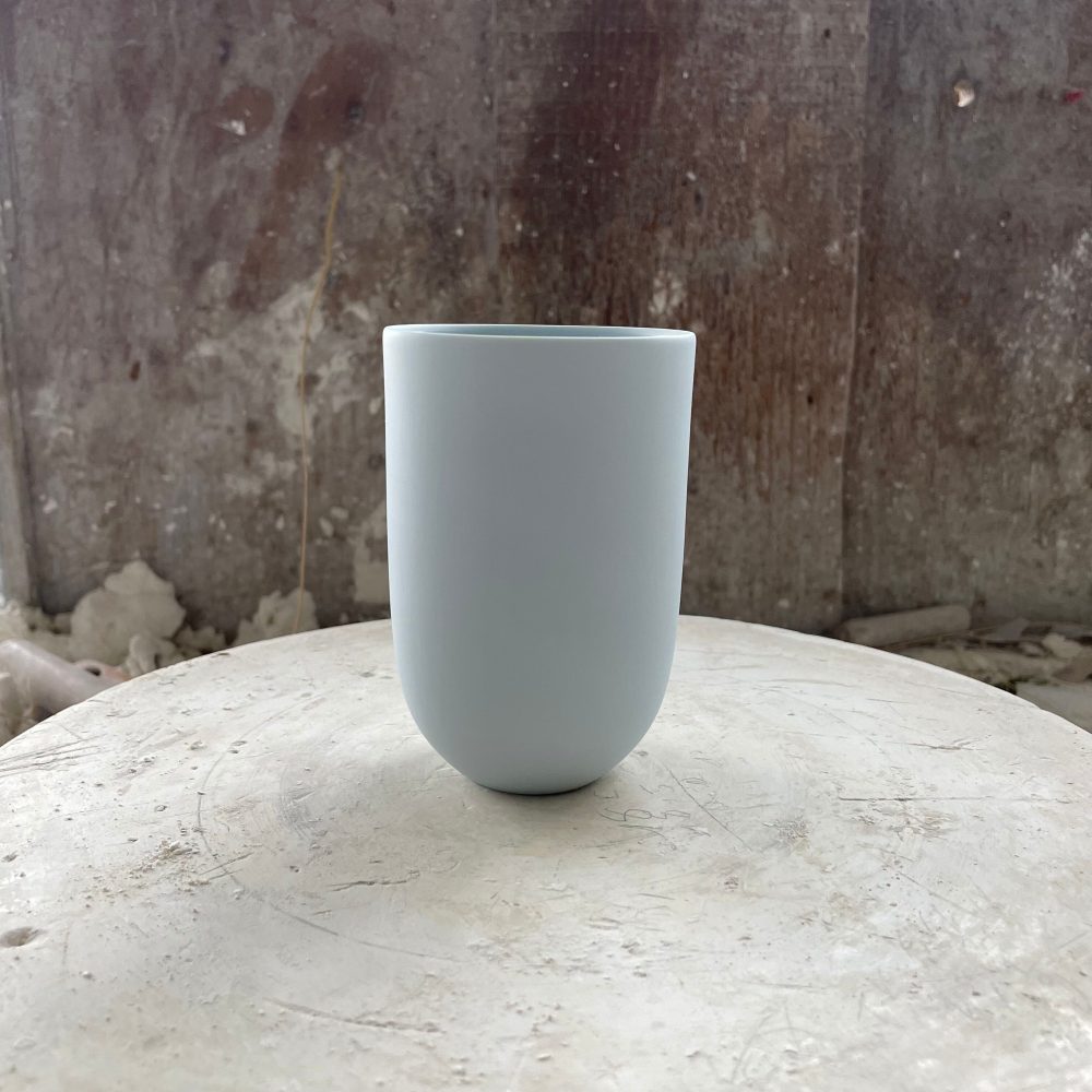 Grand gobelet biscuit kaolin bleu azurin, émail intérieur.